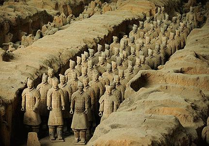 Vào năm 1974, người ta đã tìm thấy và khai quật khu lăng mộ của vị hoàng đế đầu tiên của Trung Hoa – Tần Thủy Hoàng. Khu lăng mộ này bao gồm hơn 8 ngàn binh lính, 130 chiến xa, 520 con ngựa và 150 kỵ binh. Tất cả đều bằng đất nung và được làm từ những năm 210 trước công nguyên.