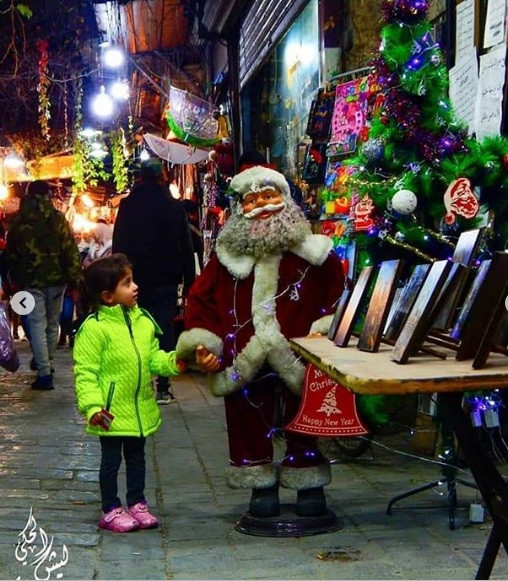 Ông già Noel xuất hiện giữa những đồ trang trí, những cây thông được trang trí đèn màu… nếu không có những chữ Ả rập thì người ta dễ nhầm lẫn đây là hình ảnh ở một nước phương Tây.