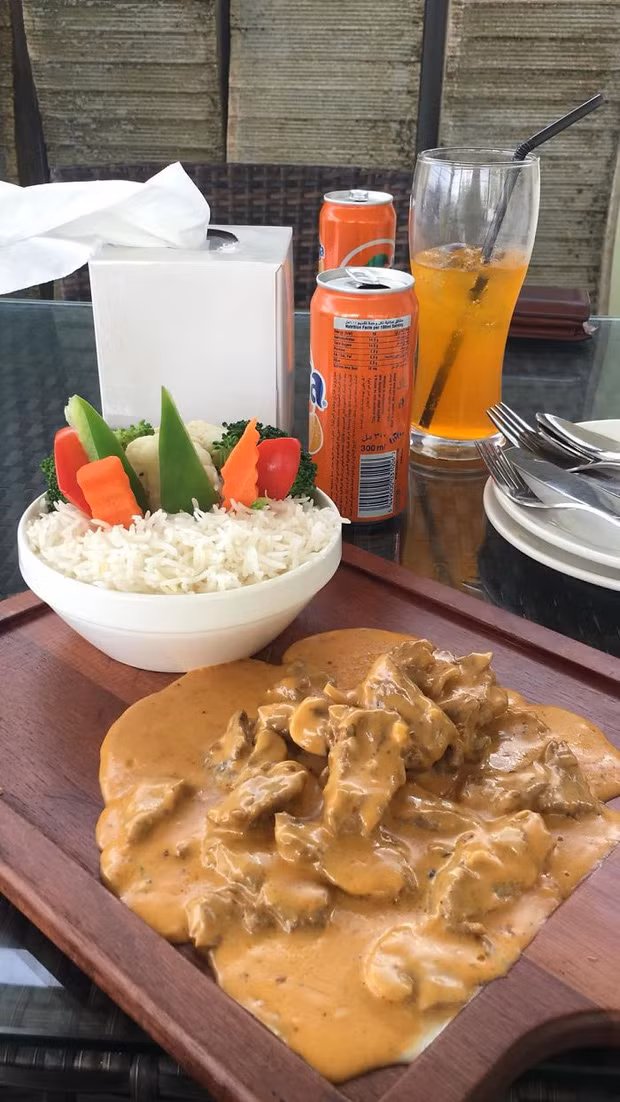 Chắc vì thấy người Ấn Độ có tập tục ăn bốc nên nhà hàng này đã giúp thực khách có cơ hội trải nghiệm cảm giác ấy bằng cách đổ hết cà-ri lên thớt như thế sao?