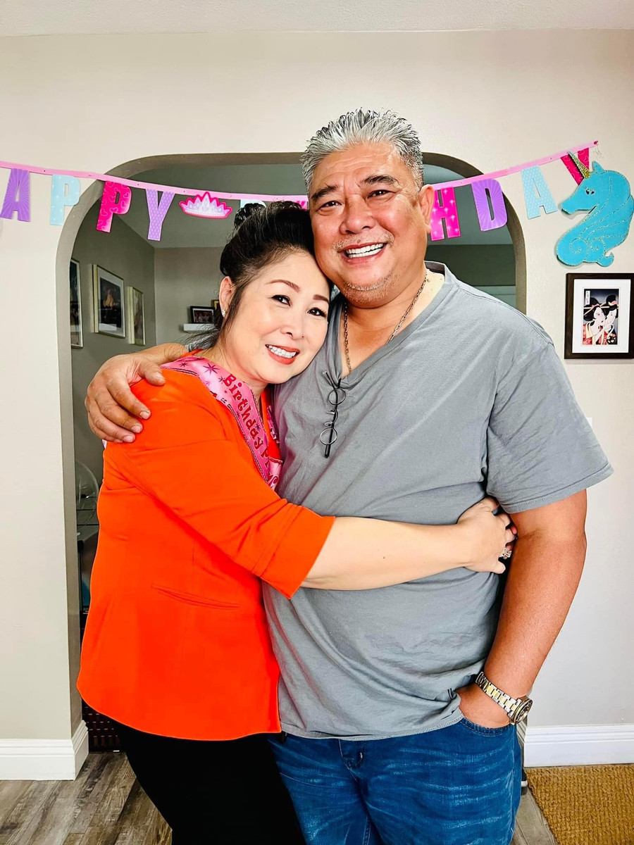 | Bà xã Hồng Vân luôn động viên, khích lệ tinh thần ông xã trong quá trình giảm cân. |