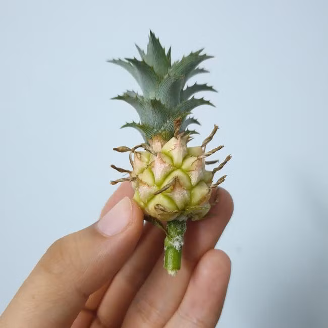 Theo chủ nhân cây dứa tí hon này hé lộ, cô nàng trồng bằng trái dứa chín, cuối cùng nó đã cho "ra đời" một tác phẩm khác đặc biệt.