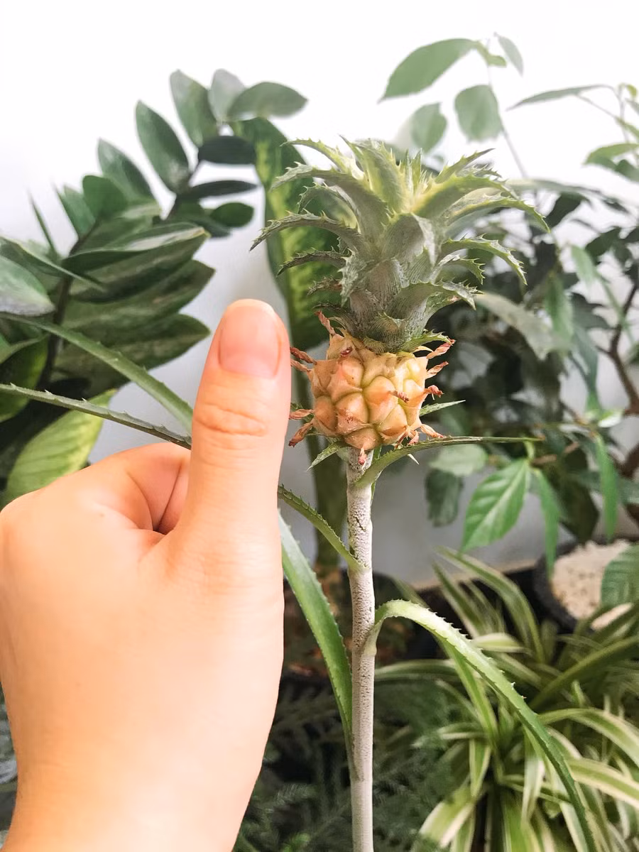 Mới đây, một cô nàng đã khoe thành quả tự trồng trái dứa ở nhà khiến dân mạng vô cùng thích thú. Đăng tải trong một group đông thành viên, cô nàng viết caption ngắn gọn: "Nhỏ nhỏ nhìn dễ thương quá, ngắm thôi chớ ăn được nhiêu đâu".