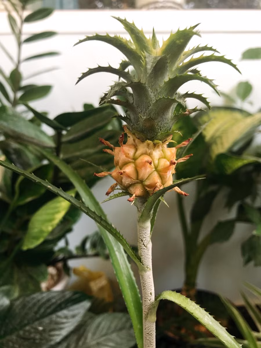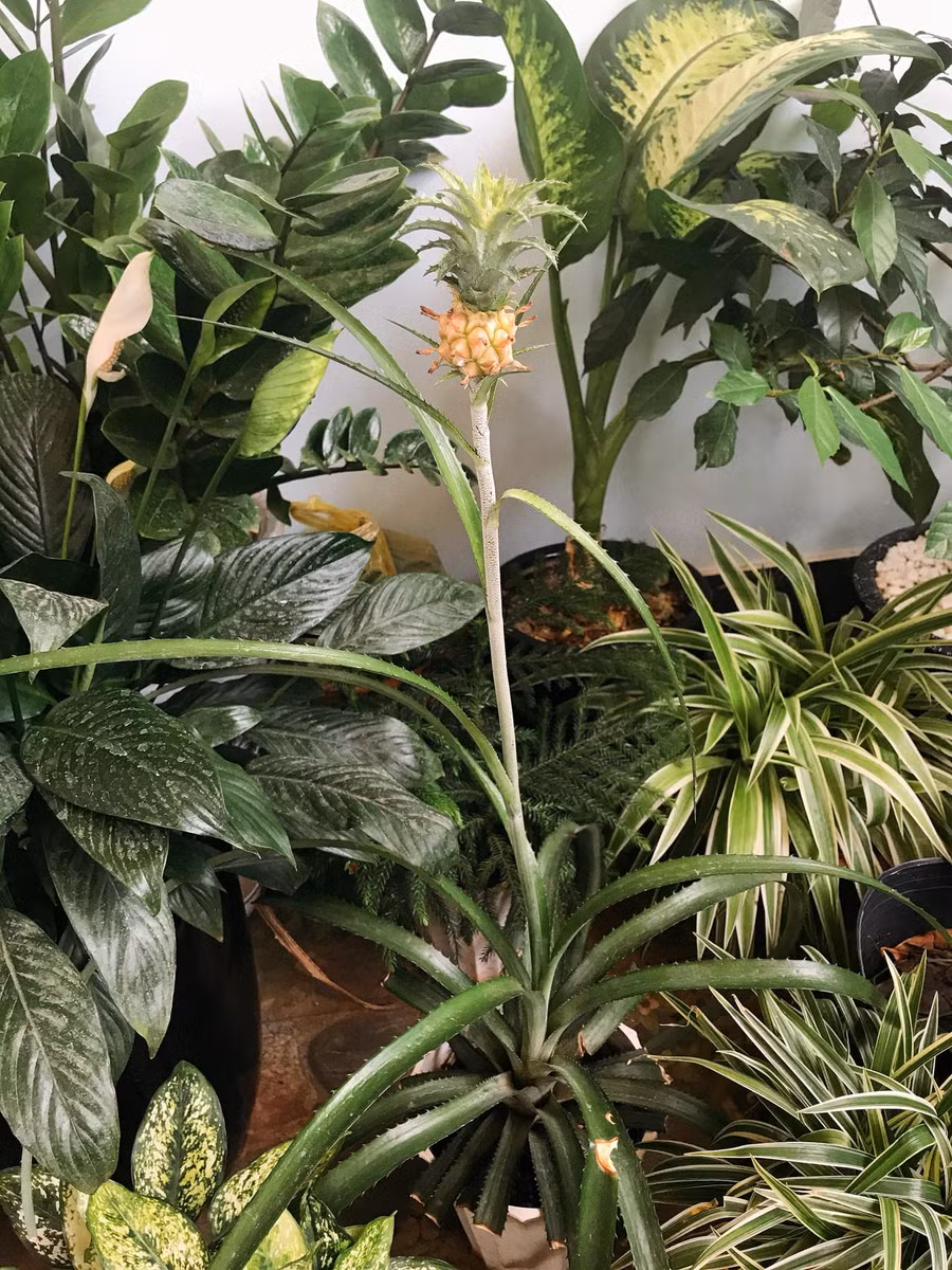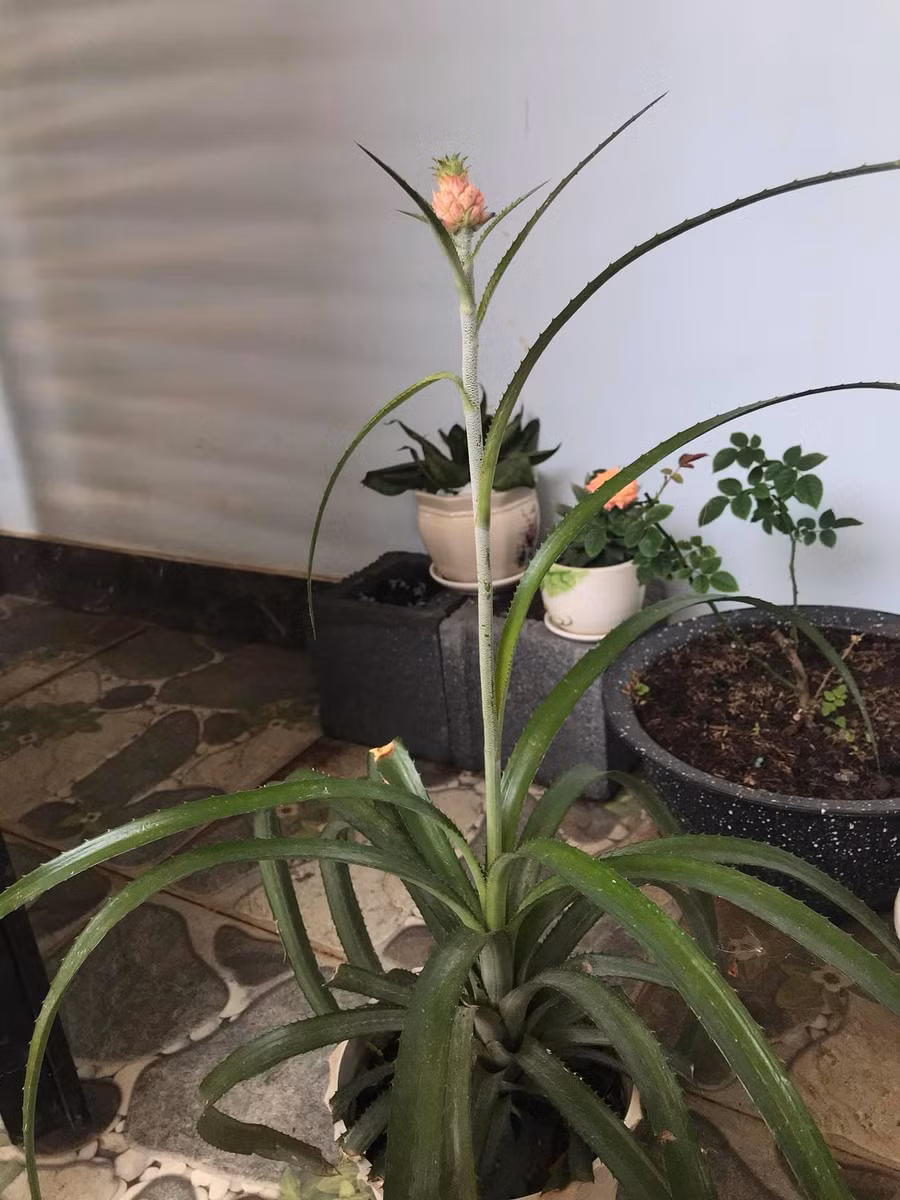 Đính kèm là loạt ảnh chụp lại khoảnh khắc của cây dứa mini với trái dứa cực kì nhỏ, thế nhưng đã chín vàng hết cả, dù trái dứa chỉ to bằng ngón tay cái nhưng cành lá rất sum suê, trông thực sự bắt mắt.