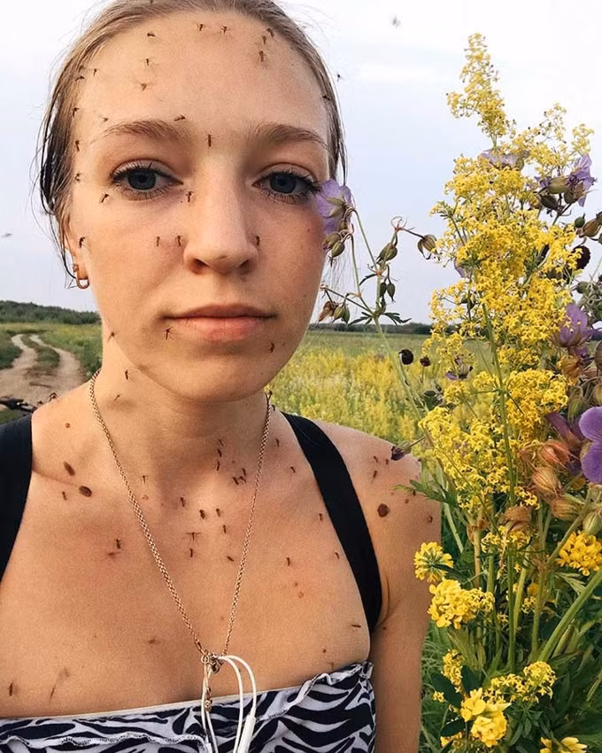 Anastasia cho biết: “Tôi chụp bức hình này chỉ trong vài giây. Vừa chụp xong là phải vội vàng lấy xe đạp bỏ chạy thật nhanh trước khi bị lũ muỗi ăn sống”. Bức ảnh khiến người xem không khỏi rùng mình vì bầy muỗi khát máu vây quanh.