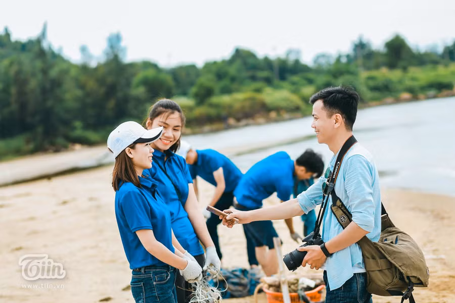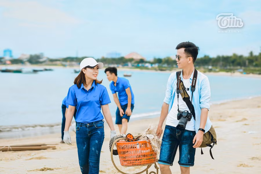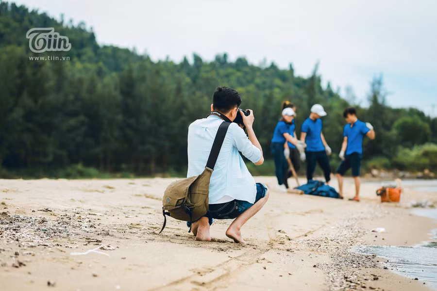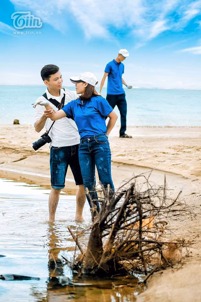 Với ý tưởng câu chuyện cô nàng tình nguyện viên gặp chàng phóng viên tình cờ trên bãi biển trong chuyến nhặt rác cùng bạn bè, cặp đôi Nghệ An khiến ai cũng bật cười khi xem bộ ảnh cưới của cả hai.