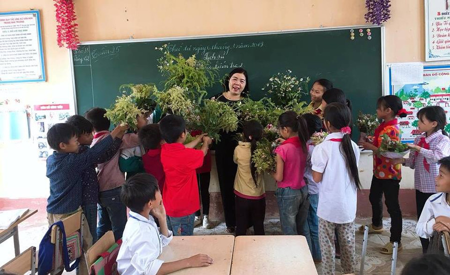 * Những hình ảnh hạnh phúc của cô Diệu trước tình cảm của học sinh với món quà 8/3 giản dị - những bó hoa rừng mộc mạc nhưng chất chứa yêu thương: