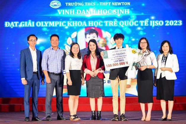 Chia sẻ về trái ngọt mà Minh Khánh mang về từ kỳ thi uy tín này, Ban lãnh đạo Trường Newton thấy vô cùng hạnh phúc và tự hào về học sinh của mình. Để kịp thời biểu dương thành tích xuất sắc của em, lãnh đạo nhà trường đã quyết định trao cho em phần thưởng xứng đáng là một Sổ tiết kiệm trị giá 100 triệu đồng. Phần thưởng có giá trị lớn của Trường Newton cho học sinh đạt thành tích cao cũng chưa từng có tiền lệ trong ngành Giáo dục Hà Nội và là lời khẳng định những ưu thế vượt trội của khối trường tư thục trong việc khuyến khích, thu hút và trọng dụng, bồi dưỡng nhân tài.