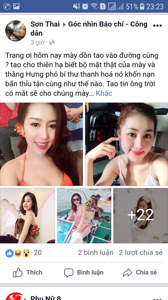 Trước đó, chiều tối 19/3, trên mạng xã hội xuất hiện một số hình ảnh (theo hình thức chụp lại) của một cô gái và nhiều hình ảnh các đoạn hội thoại giữa cô gái trên với người được cho là Phó bí thư thường trực Tỉnh ủy Thanh Hóa.