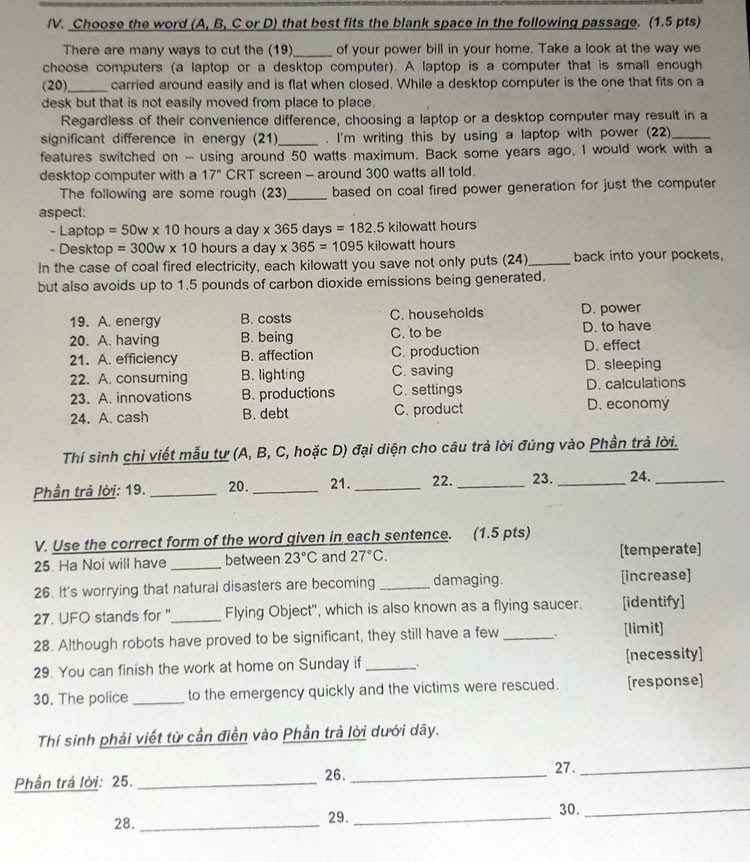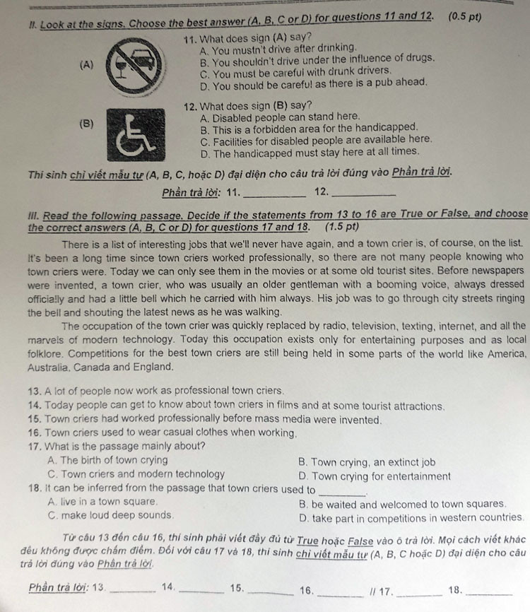 | Ảnh chụp đề thi môn tiếng Anh |