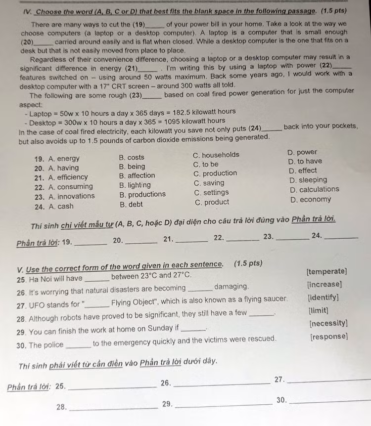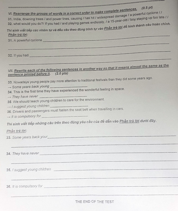 Cụ thể, ở câu 33, câu yêu cầu viết lại từ câu "Nowadays young people pay more attention to traditional festivals than they did some years ago" thành câu "Some years back young...." nhưng phần câu trả lời đề lại in sai chữ "young" ở câu viết lại thành chữ "your".