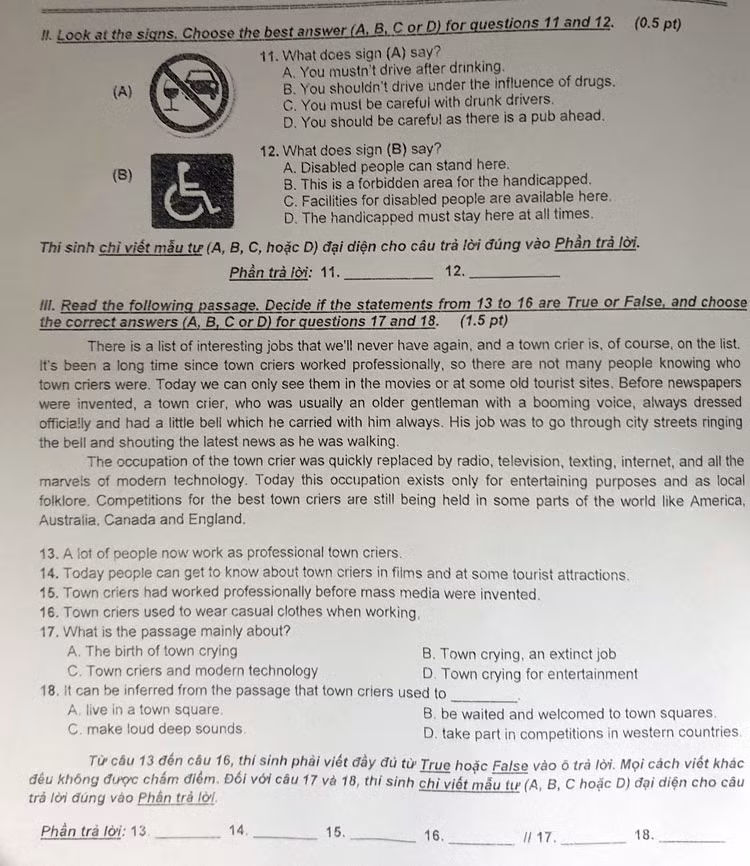 Ghi nhận tại điểm thi Trường THPT Trưng Vương, quận 1, một số thí sinh phản ánh: Trong đề thi môn tiếng Anh, ở câu 33 trong đề có sai một lỗi chính tả, ở câu hỏi ghi “young”, trong phần trả lời câu trả lời ghi “your”.