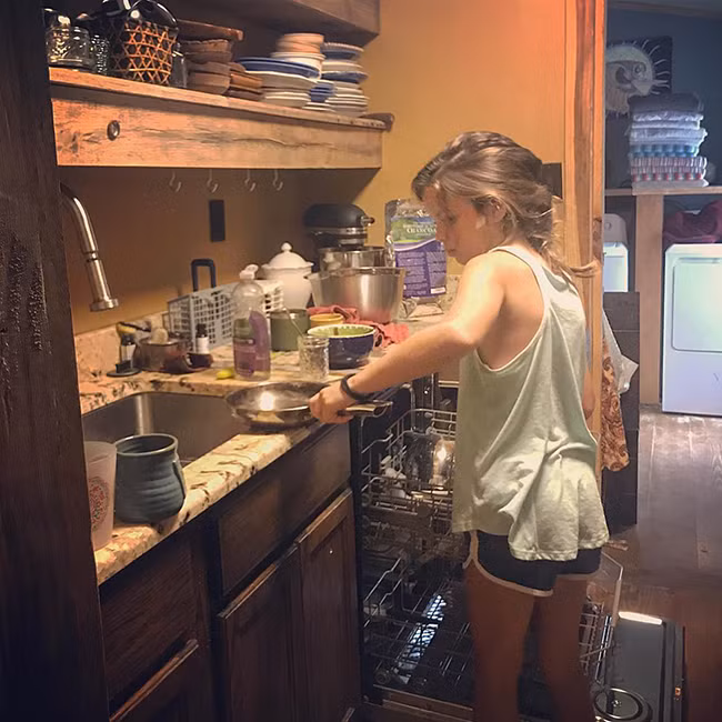 Một bức ảnh khác chụp con gái của Brooke Hampton đang tất bật với việc bếp núc.