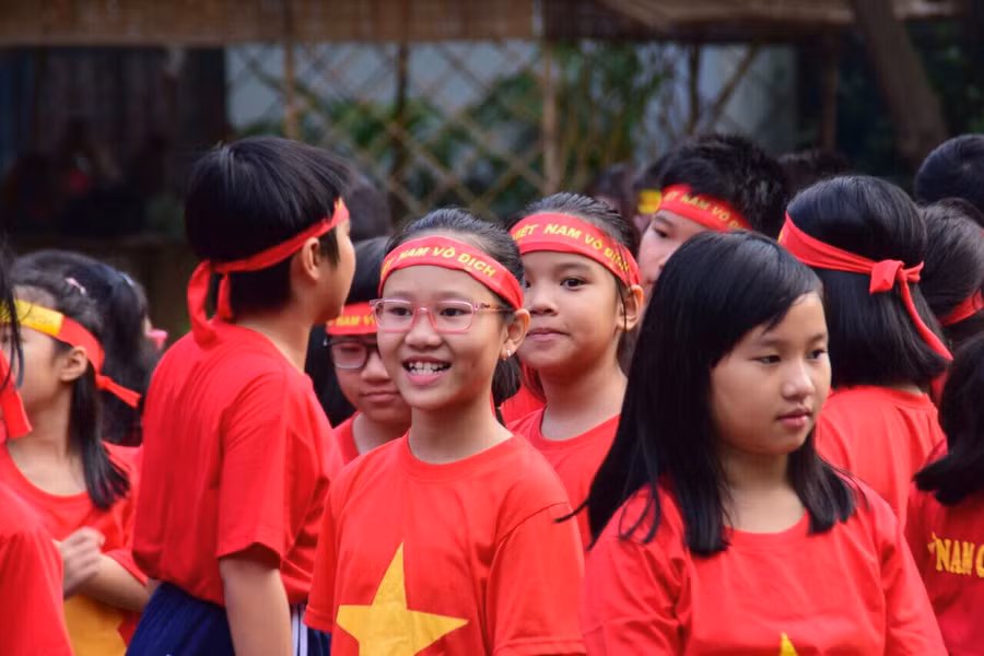 Sau thời gian ngắn sinh hoạt, học sinh đã cùng nhau tham gia các hoạt động vẽ tranh cổ động, làm cờ, làm logo cờ đỏ sao vàng để dán vào mặt và nhất là đồng phục áo đỏ, sao vàng. Cô và trò cùng nhau xếp hình trái tim, hô vang "Việt Nam vô địch. Việt Nam chiến thắng" để thể hiện tình yêu của mình dành cho các cầu thủ.