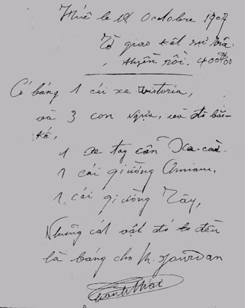 Ông Nguyễn Phước Hải Trung - Phó Giám đốc Trung tâm Bảo tồn Di tích Cố đô Huế - cho biết: Chiếc xe này được vua Thành Thái tặng cho mẹ là Thái hậu Từ Minh để đi dạo trong vườn Thượng uyển. Sau khi Thái hậu Từ Minh qua đời, xe được vua Thành Thái đem bán cho một lính Pháp năm 1907. Số tiền bán được lúc đó là 400 đồng và được vua dùng để mua một chiếc ôtô.