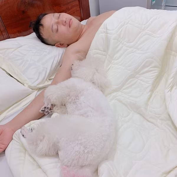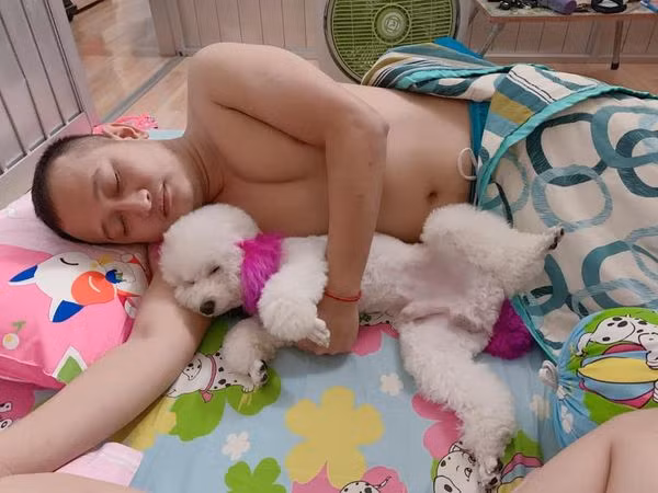 Được biết, Boss này chỉ thích ngủ trong vòng tay của chồng "chủ thớt". Mặc dù cô nàng đang có bầu và sắp sinh, cần cách ly Boss ngủ chỗ khác, nhưng khi "tập" thói quen đó cho Boss thì bất thành. Thấy vậy, chồng cô quyết "xanh rờn" "thì mai mốt anh qua phòng khác ngủ với Chum"
