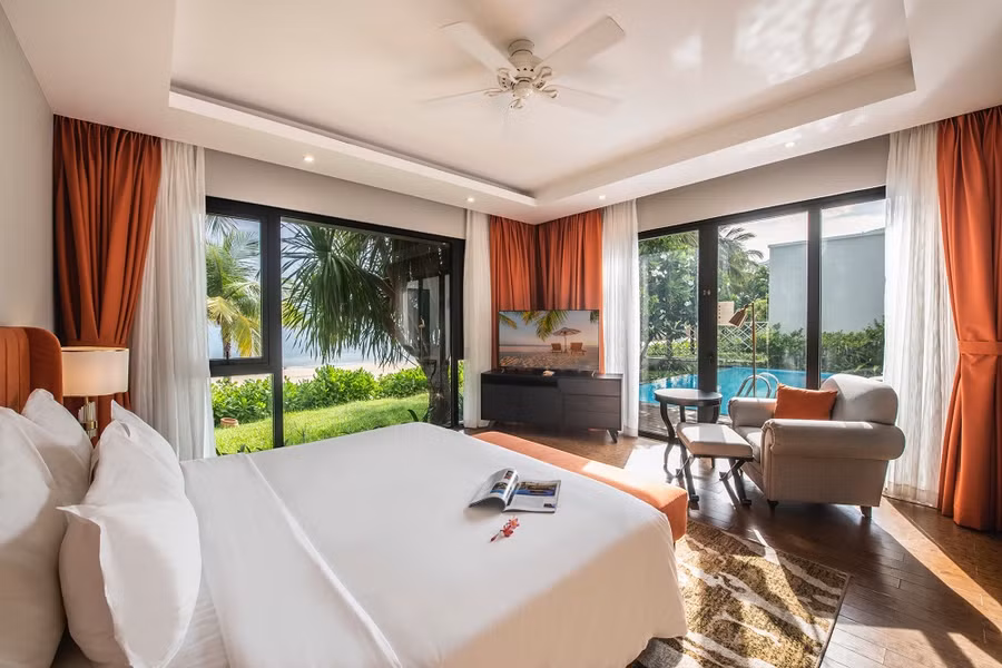 Sau những giây phút “quẫy cực chất”, căn biệt thự biển theo phong cách Tropicana villa sẽ chào đón du khách trở về với không gian nghỉ dưỡng thanh bình, chan hoà giữa những giai điệu phóng khoáng từ đại dương.