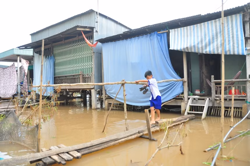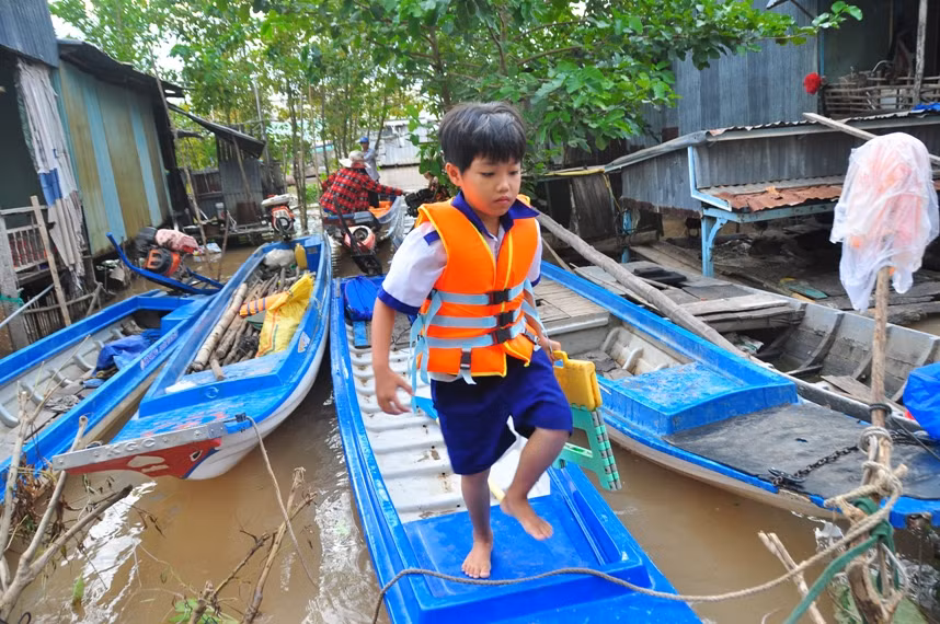 Đến vùng rốn lũ trong ngày đầu năm học, tại khu vực biên giới tiếp giáp Campuchia thuộc xã Vĩnh Hội Đông (huyện An Phú, An Giang). Hiện tại nơi này bị ngập sâu hơn 1 mét nước, xung quanh bị cô lập. Để đến được trường học, các em học sinh phải thức dậy từ sớm chuẩn bị rồi được cha mẹ, nhà trường đưa bằng xuồng máy đến trường.