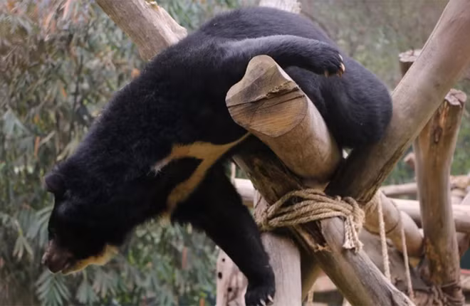 Parly còn thích chơi xích đu với các bạn. Trung tâm cứu hộ gấu Việt Nam là mái nhà của hơn 100 con gấu ngựa và gấu chó.