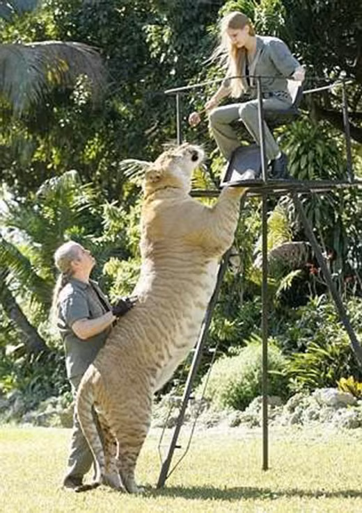 “Liger” là loài vật được lai giữa sư tử đực và hổ cái có ngoại hình… vừa giống cả bố lẫn mẹ nhưng lại khổng lồ về kích thước. Con “liger” to nhất thế giới được Guinness công nhận là Hercules, sống tại Myrtle Beach Safari, Nam Carolina. Nó dài khoảng 3m, cao 1,8m và nặng nửa tấn khi chỉ mới 3 tuổi, bên cạnh đó, tốc độ của nó có thể lên đến 80km/h. Ngoài ra, Hercules còn rất thích bơi lội, một đặc điểm lạ lùng hầu như chưa từng được nghe nói đến ở sư tử.