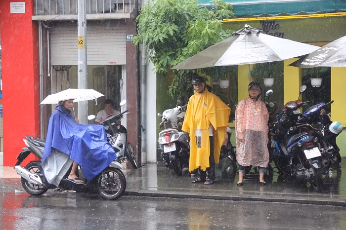 Chùm ảnh phụ huynh, thí sinh đội mưa rời điểm thi