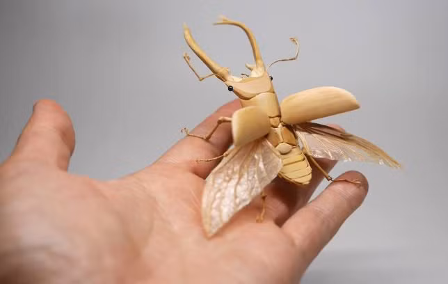 Tính linh hoạt, dẻo dai tự nhiên của tre đã giúp nghệ sĩ rất nhiều trong sáng tạo các tác phẩm nghệ thuật côn trùng độc đáo này. Ông và các cộng sự đã uốn cong, khắc rạch và sắp lớp chất liệu, nắm bắt từng chi tiết nhỏ để đạt mức độ hoàn hảo.