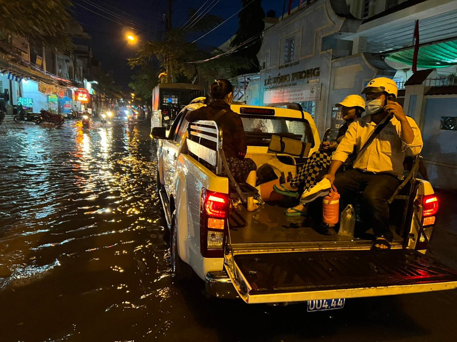 Lãnh đạo Thành ủy Sóc Trăng còn yêu cầu lực lượng cảnh sát giao thông dùng xe tải có hệ thống nâng để đưa xe 2 bánh chết máy ra ngoài. Những xe tải này cũng chở nhiều học sinh ra khỏi vùng ngập.