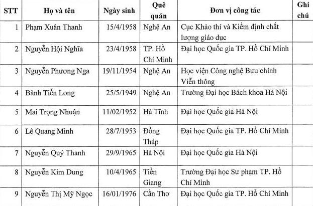 Theo đó, số lượng được đặc cách là 9 người, gồm các ông, bà cụ thể như sau: