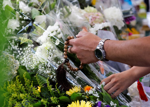 Hình ảnh người dân Nhật Bản đặt hoa tại nơi ông Shinzo Abe bị ám sát: