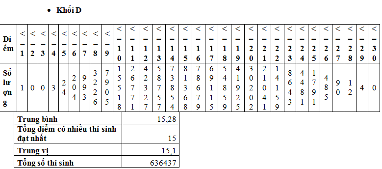 Điểm trung bình của tổng điểm của các khối thi được phân tích đều lớn hơn 15.