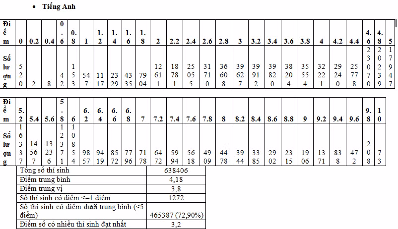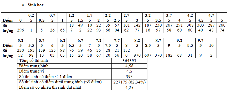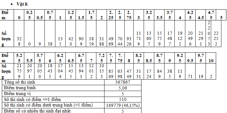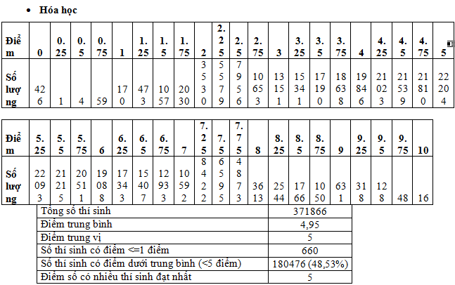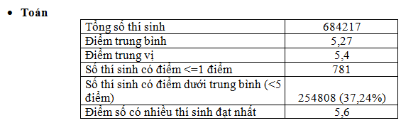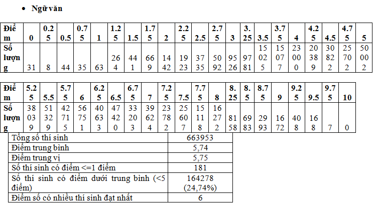 Nhận định của Bộ GD&ĐT, dạng phổ điểm của tất cả các môn thi, bài thi đều tiệm cận gần với phân phối chuẩn. Điểm trung bình và trung vị của các môn gần như nhau.