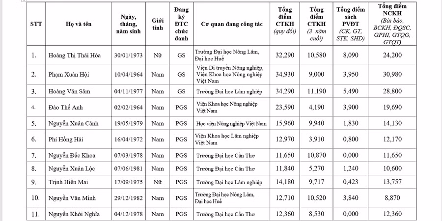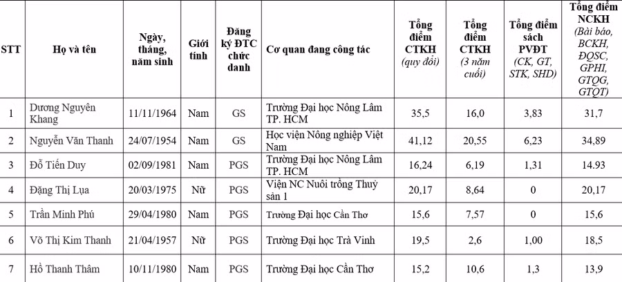 Hội đồng Giáo sư liên ngành Chăn nuôi-Thú y-Thủy sản:
