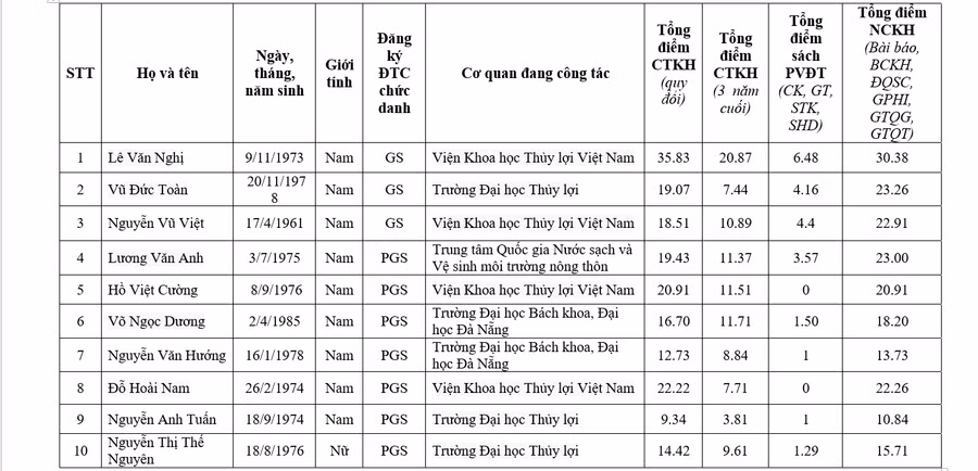 Hội đồng Giáo sư ngành Thủy lợi