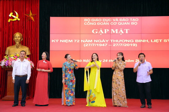 Với lòng thành kính, biết ơn sâu sắc, Công đoàn cơ quan Bộ GD&ĐT đã thực hiện nhiều hoạt động thiết thực nhằm động viên chia sẻ đối với các cán bộ, công chức đang công tác tại cơ quan Bộ là con liệt sỹ, con thương, bệnh binh, gia đình thờ cúng liệt sỹ, gia đình có công với cách mạng nhân kỷ niệm Ngày Thương binh, liệt sỹ 27/7 hằng năm. Năm nay, Công đoàn cơ quan Bộ đã tổ chức thăm hỏi Trung tâm nuôi dưỡng người có công tỉnh Phú Thọ.
