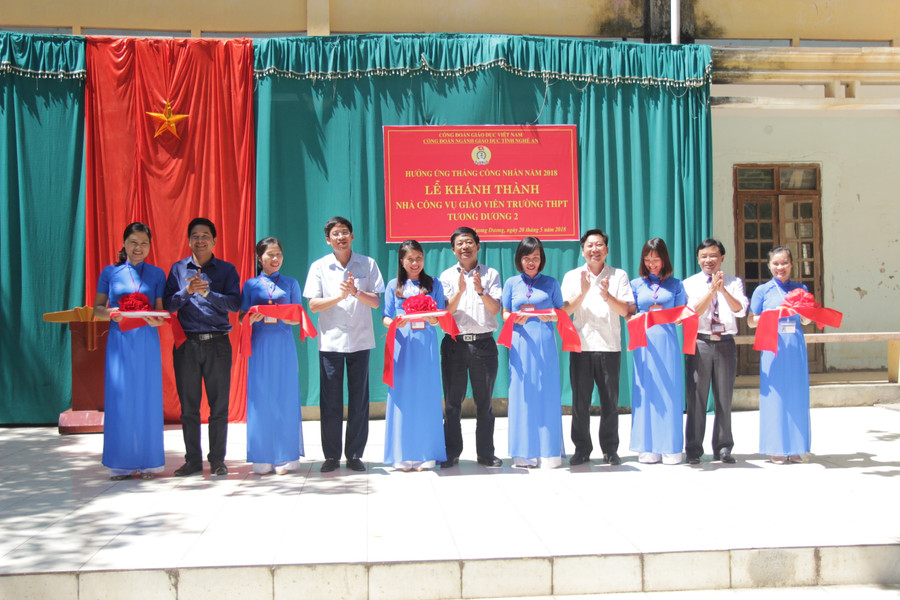 Chia sẻ cùng cán bộ, giáo viên, nhân viên trường THPT Tương Dương 2, Chủ tịch Công đoàn Giáo dục Việt Nam – ông Vũ Minh Đức – bày tỏ sự vui mừng khi công trình nhà công vụ hoàn thành, đưa vào sử dụng tạo điều kiện cho các giáo viên ổn định cuộc sống, sinh hoạt.