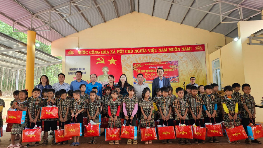 Công đoàn Cơ quan Sở GD&ĐT Quảng Trị và Công đoàn cơ sở Trung tâm Giáo dục thường xuyên - Tin học, ngoại ngữ tỉnh vừa tổ chức thăm, tặng quà đến cán bộ, giáo viên và học sinh các trường học trên địa bàn xã miền núi Vĩnh Khê, huyện Vĩnh Linh nhân dịp Tết Nguyên đán Giáp Thìn 2024.