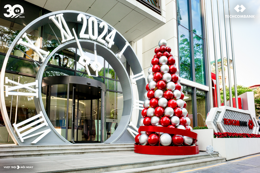 Tại tòa nhà Techcombank Sài Gòn, những trang trí kết hợp cùng vẻ đẹp hiện đại cũng đã thu hút đông đảo công chúng. Chiếc đồng hồ vượt thời gian, cây thông Noel khổng lồ tại Lê Duẩn vẫn tiếp tục trở thành một trong những điểm đến hấp dẫn của người dân Sài Gòn mùa lễ hội