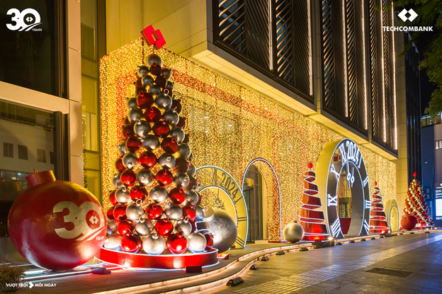 Những trang trí Giáng sinh của Techcombank làm tôn thêm vẻ đẹp biểu tượng văn hóa hai tòa nhà tại hai thành phố lớn và mang đến một không khí lễ hội ấm áp cùng tiễn năm cũ, đón năm mới với nhiều điều tốt lành