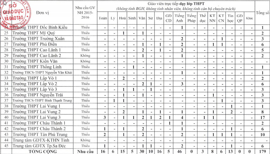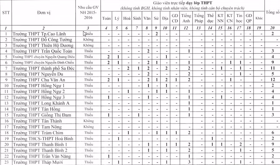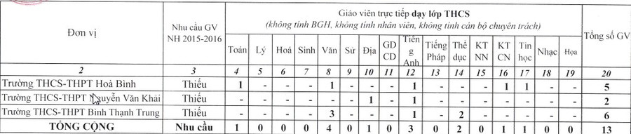 Cụ thể, nhu cầu tại các trường THCS - THPT như sau: