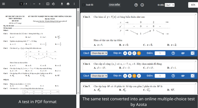 Với tính năng này, giáo viên không chỉ tiết kiệm được thời gian chấm bài, mà còn có thể tiếp tục quản lý điểm số của từng học sinh, của cả lớp như trước đây. Hiện tại, đội ngũ Azota đang tiếp tục xây dựng ngân hàng câu hỏi cho phép giáo viên lựa chọn, tham khảo để tạo lập bài kiểm tra.