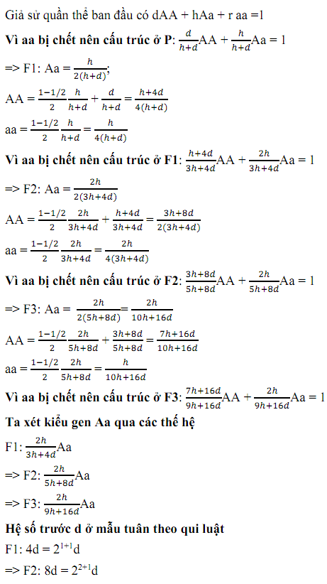 Thiết lập công thức xác định cấu trúc di truyền của quần thể tự phối trong trường hợp aa bị chọn lọc đào thải cụ thể như sau: