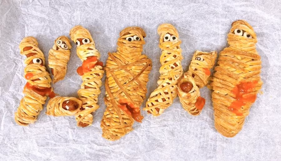 Nếu xúc xích cỡ nhỏ thì giảm thời gian nướng xuống, làm xác ướp càng to bạn phải tăng thời gian nướng.