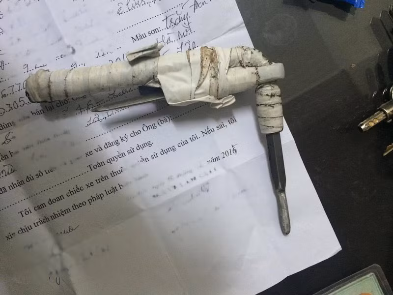 Chiếc vam phá khóa xe máy cơ quan thu giữ từ Lập.