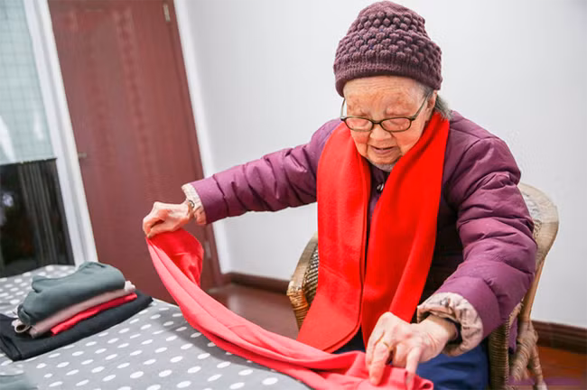 Bức ảnh này được chụp vào ngày 16 /1/ 2018. Người phụ nữ lớn tuổi trong ảnh là cụ Đào Khắc Minh (Tao Ke Ming), 107 tuổi, sống ở thị trấn Bạch Bồ, thành phố Như Cao, tỉnh Giang Tô (TQ).