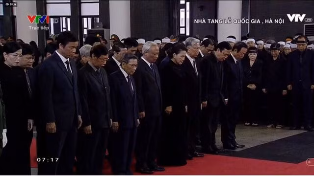 Đứng đầu đoàn vào viếng có Chủ tịch Quốc hội Nguyễn Thị Kim Ngân, Thủ tướng Nguyễn Xuân Phúc, nguyên Tổng Bí thư Nông Đức Mạnh, nguyên Chủ tịch nước Trương Tấn Sang, nguyên Chủ tịch nước Nguyễn Minh Triết, nguyên Thủ tướng Nguyễn Tấn Dũng, nguyên Chủ tịch Quốc hội Nguyễn Văn An…