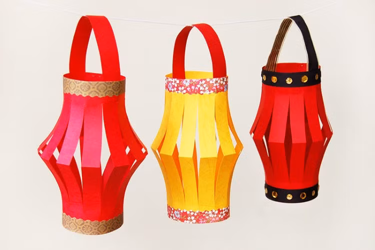 Đèn lồng cũng được coi là một món đồ đặc trưng trong dịp Tết Nguyên đán tại các quốc gia châu Á. Cha mẹ có thể hướng dẫn bé tự làm bằng cách gấp đôi tờ giấy theo chiều dọc. Lấy bút chì và thước kẻ, kẻ một đường theo chiều ngang của tờ giấy, đấy là đường “không cắt”, đánh dấu nơi ngừng cắt của tờ giấy.