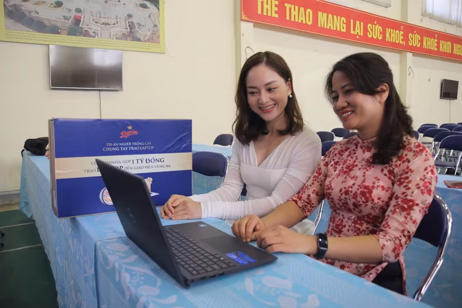 | MC Thanh Thanh Huyền cũng tham gia chương trình của Danisa, gửi trao lời tri ân đến thầy cô trong dịp 20/11 và chung tay trao laptop cho các giáo viên vùng xa |