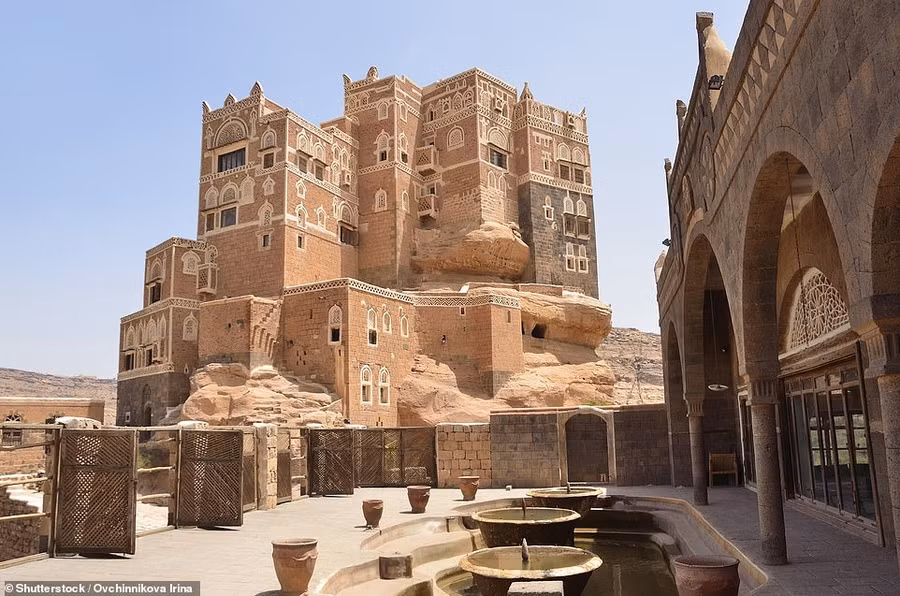 | Nằm ở thung lũng Wadi Dhahr cách thủ đô Sana'a gần 15 km, cung điện Dar al-Hajar được xây dựng làm nơi ở mùa hè cho quốc vương Yemen, Yahya Muhammad Hamiddin, từ những năm 1920. Cung điện trên cột đá này là một trong những công trình ngoạn mục nhất thế giới. |