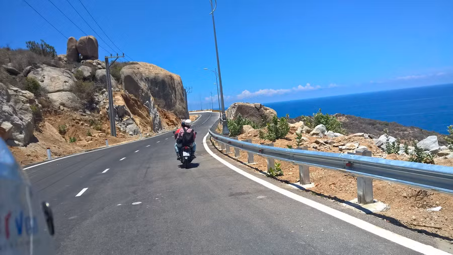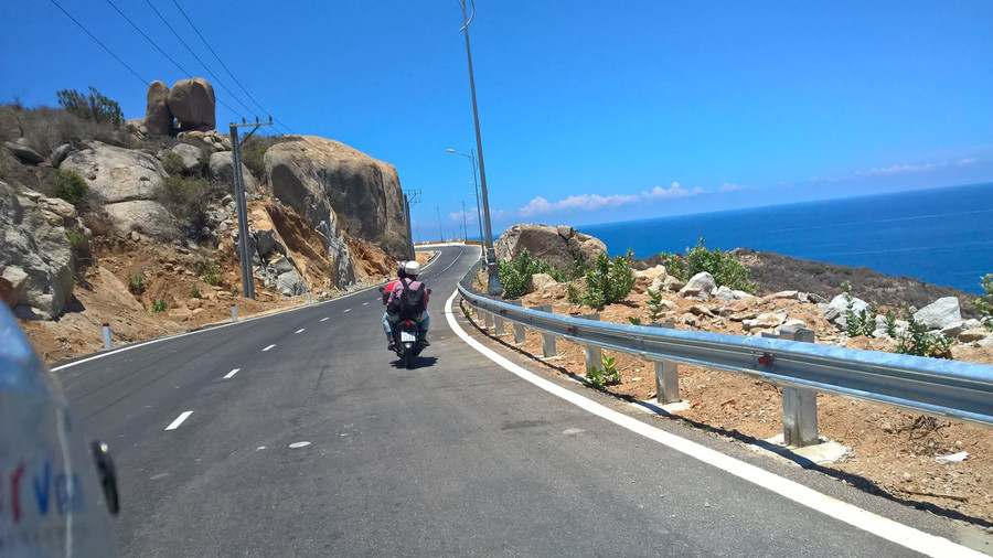 Nếu bạn từng có cảm giác hồi hộp khi lượn trên con đường xuyên cao nguyên đá ở Hà Giang, thì có lẽ sẽ vỡ òa sung sướng khi bon bon chạy xe qua con đường ven biển Bình Tiên, Ninh Thuận.