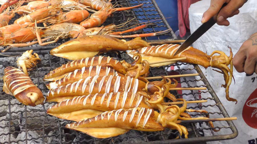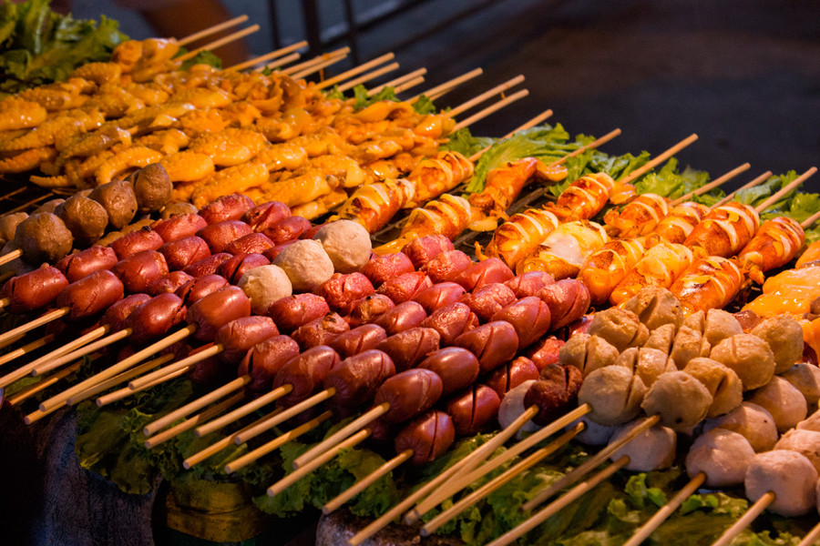 Khu chợ này nổi tiếng với những món ăn đường phố của Thái Lan. Đồ nướng, đồ chiên, rán và các món được chế biến từ thịt rất nổi tiếng tại đây. Chỉ cần bước tới đầu khu phố thôi bạn cũng đã cảm nhận được mùi thơm tới náo nức ruột gan của các món ăn. Không chỉ hấp dẫn, đồ ăn tại đây còn khá rẻ. Ngoài những món thịt nướng hấp dẫn, bạn cũng có thể thưởng thức món kem dừa tươi với xôi ngọt ở chợ Suan Luang ngay bên cạnh.
