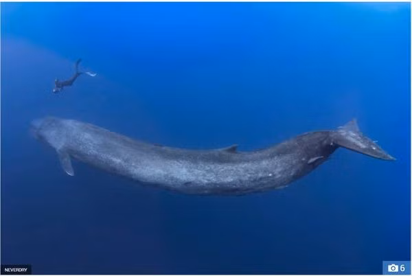 Người thợ lặn trông vô cùng nhỏ bé so với chú cá voi xanh.